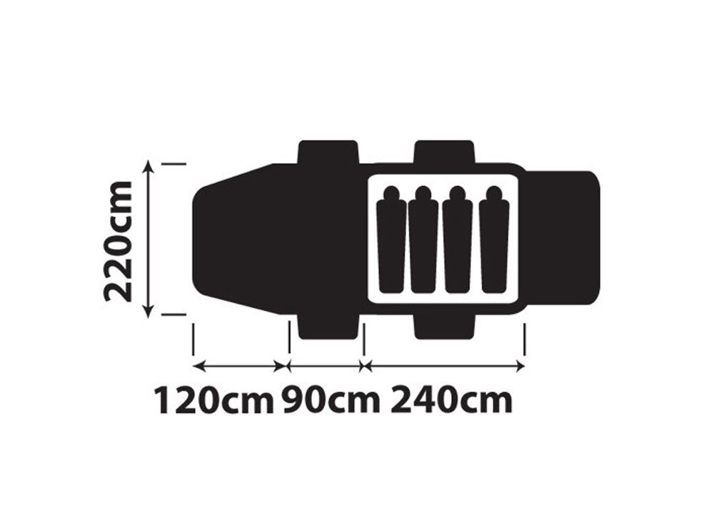 Tent floor area: 450 x 220 cm