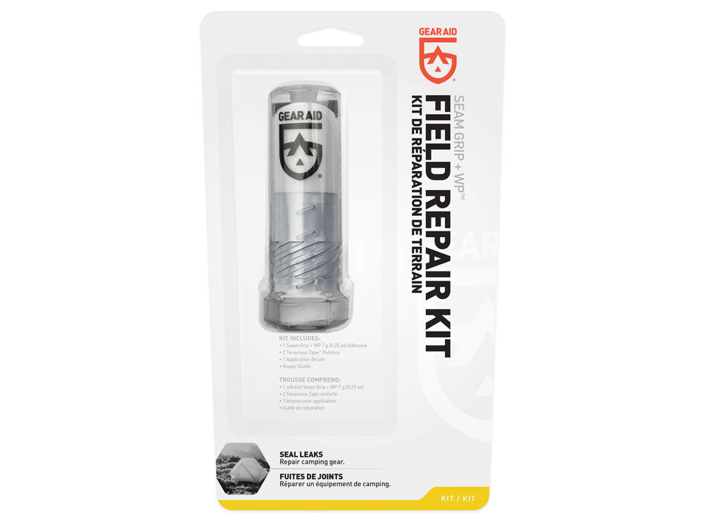The Gear Aid Seam Grip WP Field Repair Kit is a compact solution for repairing torn gear, it includes a waterproof sealant and two peel-and-stick patches. It's perfect for use as a seam sealer or repair adhesive for a tent and other camping gear. Durable, abrasion-resistant and bonds to most outdoor fabrics.