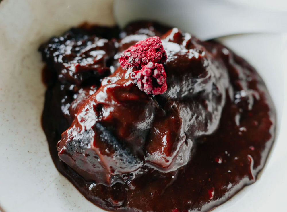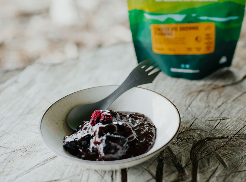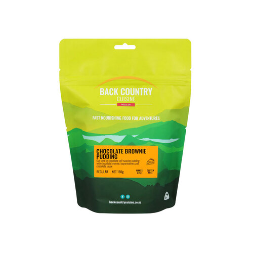 Back Country Cuisine's take on chocolate self-saucing pudding, with chocolate brownie, boysenberries and chocolate sauce. Gluten free. A quick and easy freeze dried meal, just add boiling water.