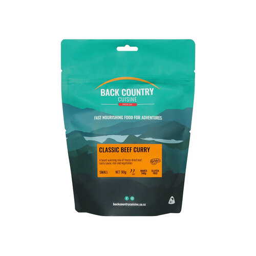 Back Country Cuisine Classic Beef Curry is a heart-warming mix of curried beef, rice and vegetables. A quick and easy freeze dried meal, just add boiling water.