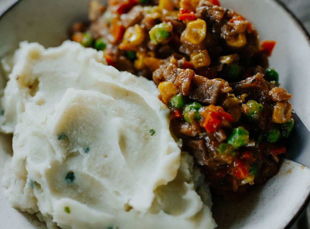 Mashed Potato (Potato Flakes (Potato, Emulsifier (471), Preservative (330), Antioxidant (223)), Milk Powder (Contains Emulsifier (322)), Canola Oil (Contains Antioxidant (319), Antifoaming Agent (900A)), Salt, Sugar, Chives), Lamb Dices (23%) (Lamb, Soy Protein Concentrate, Salt, Brown Sugar, Mineral Salt (451, 450), Coriander, Mint, Pepper, Rosemary Extract), Sauce (Maltodextrin, Sugar, Thickener (1442), Milk Solids, Vegetables, Hydrolysed Vegetable Protein, Herbs & Spices, Yeast Extract), Corn, Peas (Peas, Acidity Regulator (331, 500)), Carrot (Contains Acidity Regulator (500)), Pumpkin