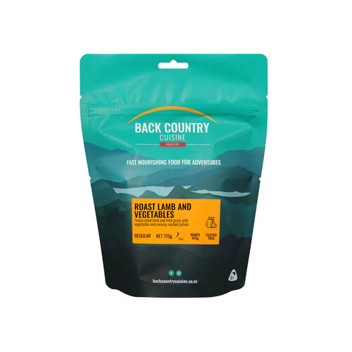Back Country Cuisine Roast Lamb & Vegetables is a delicious freeze dried lamb and mint gravy meal with vegetables and creamy mashed potato to satisfy you after a hard day in the bush. Gluten free. A quick and easy freeze dried meal, just add boiling water.