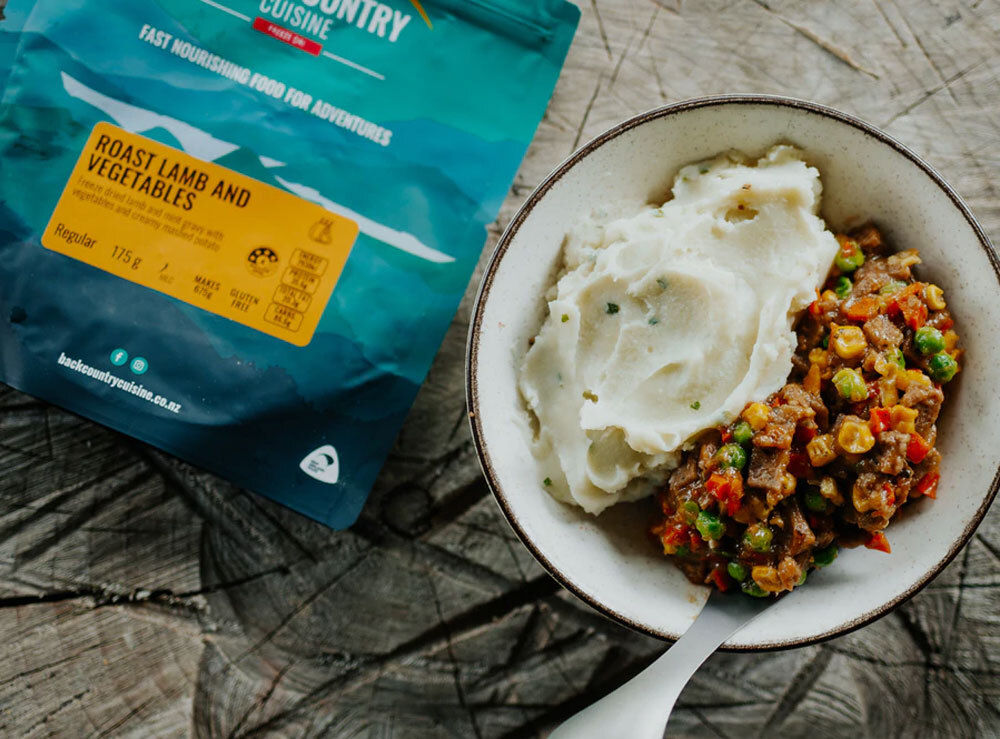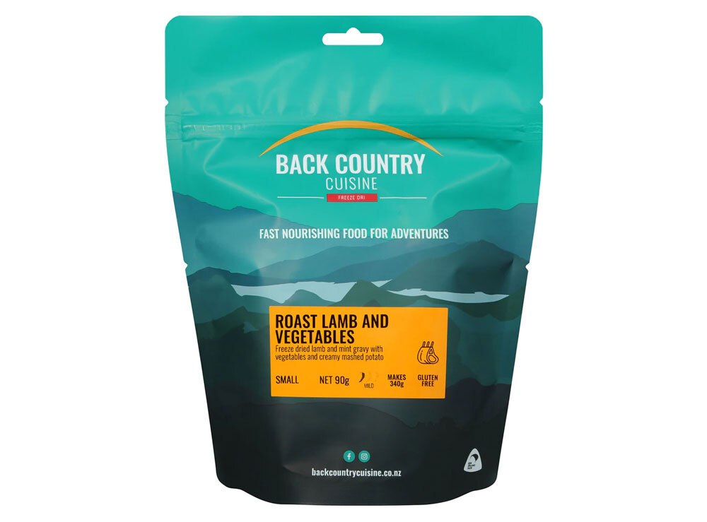 Back Country Cuisine Roast Lamb & Vegetables is a delicious freeze dried lamb and mint gravy meal with vegetables and creamy mashed potato to satisfy you after a hard day in the bush. Gluten free. A quick and easy freeze dried meal, just add boiling water.