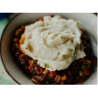 Mashed Potato (Potato Flakes (Potato, Emulsifier (471), Preservative (330), Antioxidant (223)), Milk Powder (Contains Emulsifier (322)), Canola Oil (Contains Antioxidant (319), Antifoaming Agent (900A)), Salt, Sugar, Chives), Lamb Dices (23%) (Lamb, Soy Protein Concentrate, Salt, Brown Sugar, Mineral Salt (451, 450), Coriander, Mint, Pepper, Rosemary Extract), Sauce (Maltodextrin, Sugar, Thickener (1442), Milk Solids, Vegetables, Hydrolysed Vegetable Protein, Herbs & Spices, Yeast Extract), Corn, Peas (Peas, Acidity Regulator (331, 500)), Carrot (Contains Acidity Regulator (500)), Pumpkin