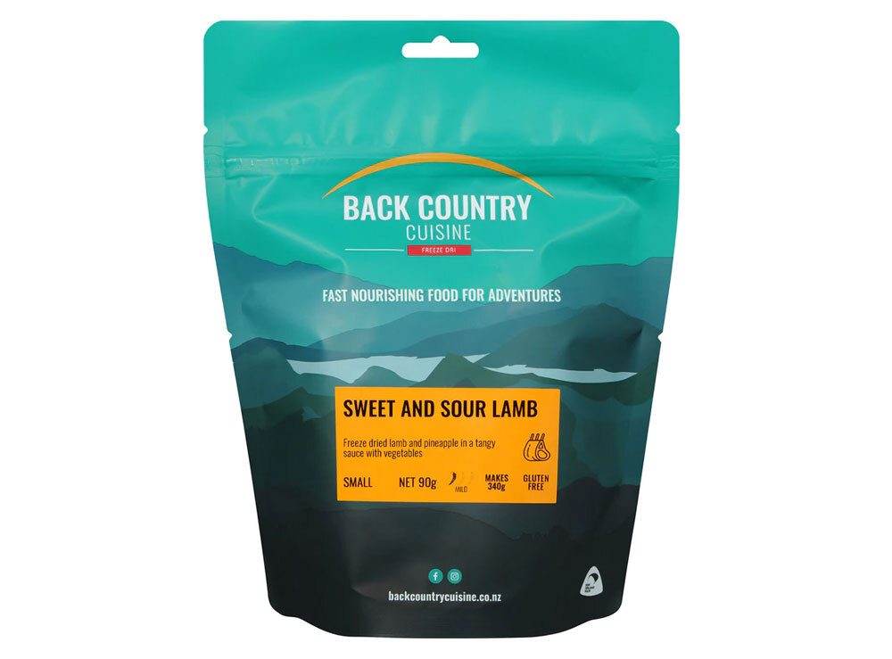 Back Country Cuisine Sweet & Sour Lamb is a freeze dried lamb and pineapple meal in a tangy sauce with vegetables. A quick and easy freeze dried meal, just add boiling water. Gluten Free. No added dairy.
