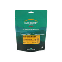 The Back Country Cuisine Tasty Chicken Mash is a creamy mashed potato with smoky flavoured freeze dried chicken, cheese and vegetables. Gluten free.