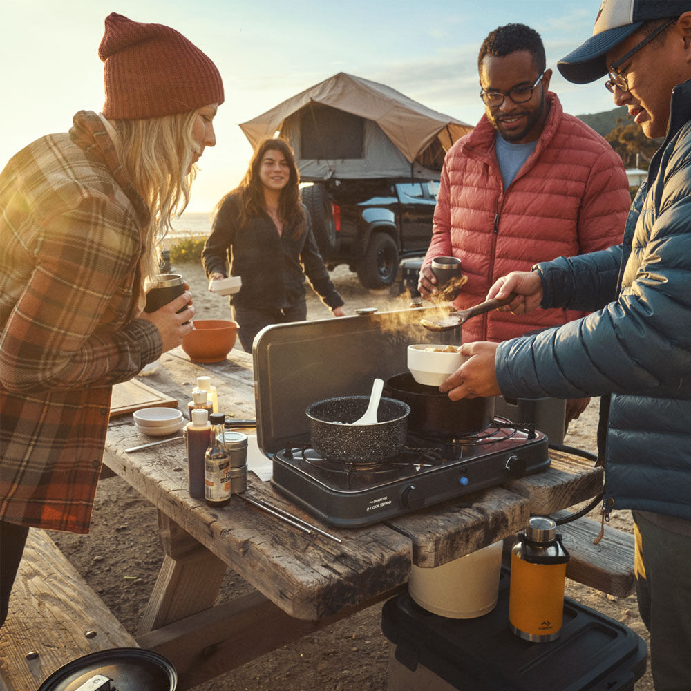 The lid serves as a windshield, protecting the gas flame from extinguishing during cooking. After use, simply close the lid securely with the handy closing clip and store it in your included carry bag.