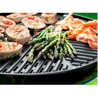 The powerful stainless-steel burner with automatic piezo ignition heats up quickly, while the integrated heat diffuser ensures even heat distribution across the generous ø 46 cm cooking surface. The included GreenGrill BBQ Grid features a PFOA-free, ceramic coating for healthier, cleaner cooking, and is easy to clean with just soapy water.