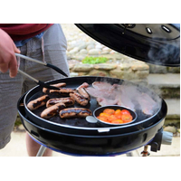 When the lid is closed, the BBQ functions as an oven, ideal for baking or stewing. The built-in dome thermometer allows you to monitor the temperature for perfect results every time. The dome can also be clipped to the back of the BBQ to act as a windshield and splash guard.