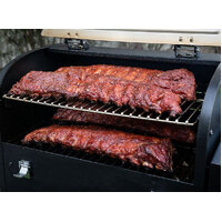 Fit up to 24 – ‚¼ pound burgers or 16 – ‚½ pound burgers, one 12-inch pizza, 4 chickens, 4 racks of ribs and 4 tri-tips.