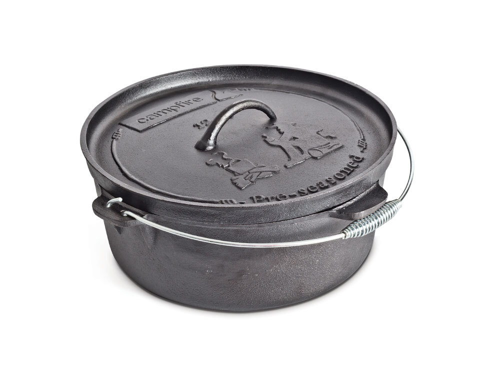 Campfire Cast Iron Camp Ovens / Dutch Ovens are ideal for campfire cooking. Great for roasting meat and vegetables, baking breads, cakes, scones, stews, casseroles and whole fish. Campfire cast iron is pre-seasoned and ready to use.