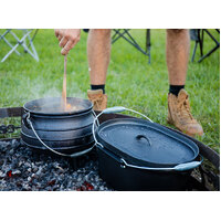 Campfire Cast Iron Camp Ovens / Dutch Ovens are ideal for campfire cooking. Great for roasting meat and vegetables, baking breads, cakes, scones, stews, casseroles and whole fish. Campfire cast iron is pre-seasoned and ready to use.