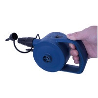 A few years ago I bought the Coleman 240v quick pump and using a 12v power inverter, used the pump on camping trips or just enjoying a day at the beach. From inflating 4x 2 man dinghy's to queen and single beds, kayaks and swimming pools it never failed under pressure.