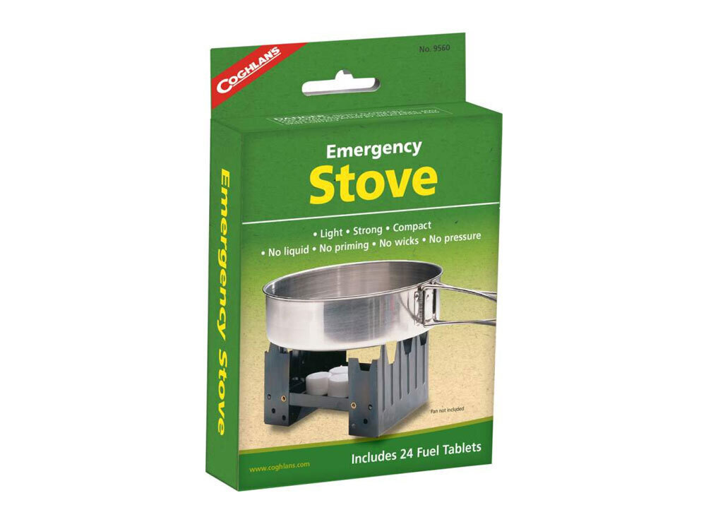 The Coghlan's Emergency Stove is the ultimate compact solution for cooking and heating water in an emergency. The stove folds together compactly while storing 24 fuel tablets internally. It's strong, lightweight, and reliable since it requires no liquids, no priming, no wick, and no pressure, making it incredibly easy to use.