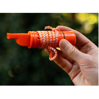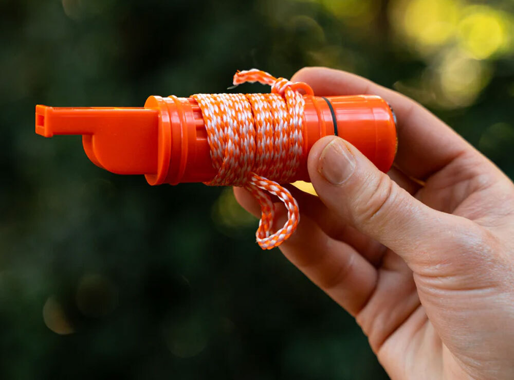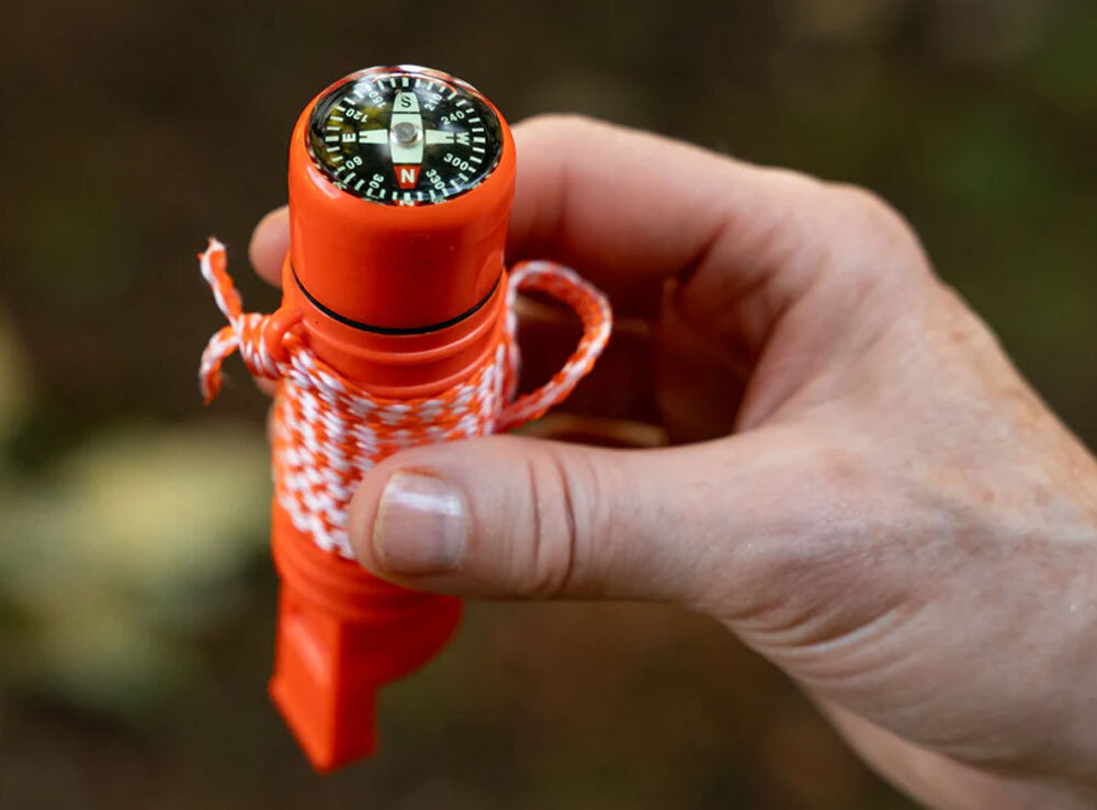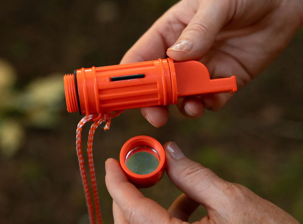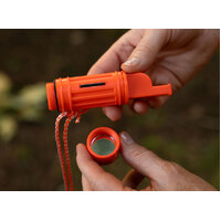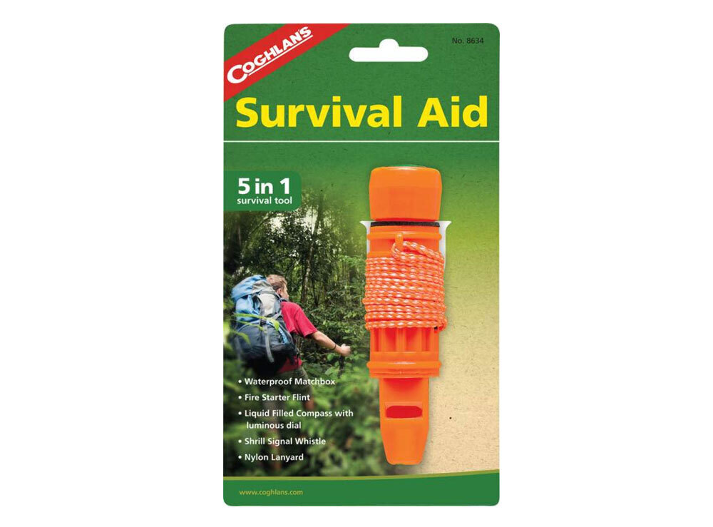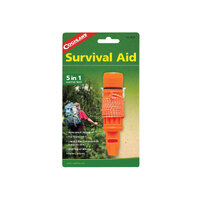 A host of survival features in a single item, the Coghlan's Survival Aid is a 5-in-1 tool for explorers seeking to save space in their pack. The Survival Aid functions as a waterproof match carrier, liquid-filled dial compass, fire starter flint, signal mirror, and signal whistle. Featuring a nylon lanyard, you can wear this tool while hiking or stash it in your pack as an emergency item.