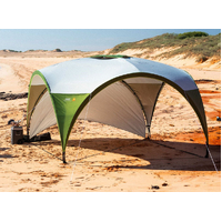 This generous shelter features a sturdy steel frame and a 150D polyester canopy, providing over 20 square meters of reliable coverage from the elements. The Easy Glide frame and pinch-free locking system make setup a breeze, even with just two people. Durable guy ropes and pegs offer extra stability, even in windy conditions. Plus, a sunwall is included for added side protection.