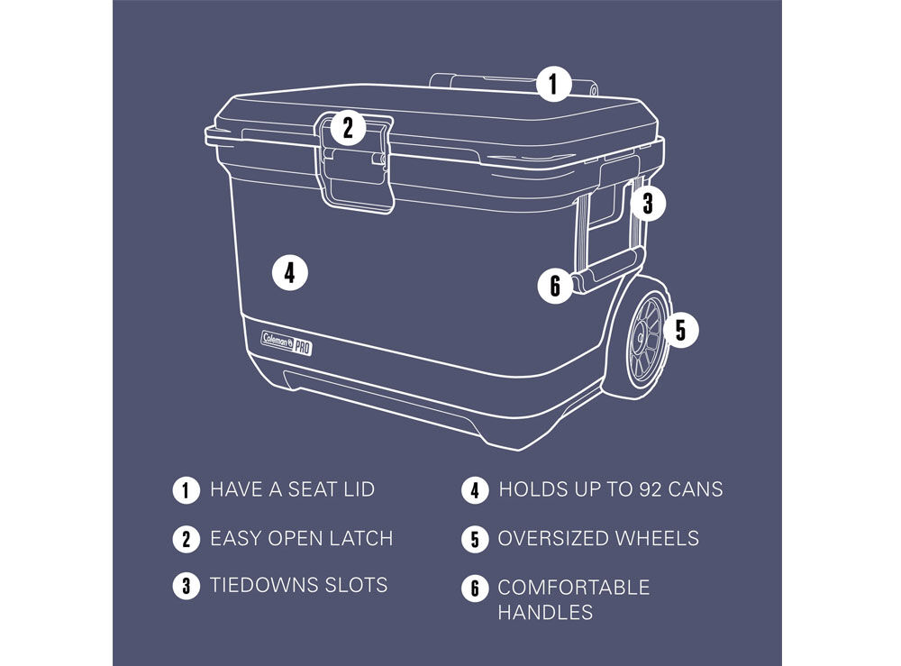 Coleman Pro 52 Litre Wheeled Hard Cooler - Neptune Features: