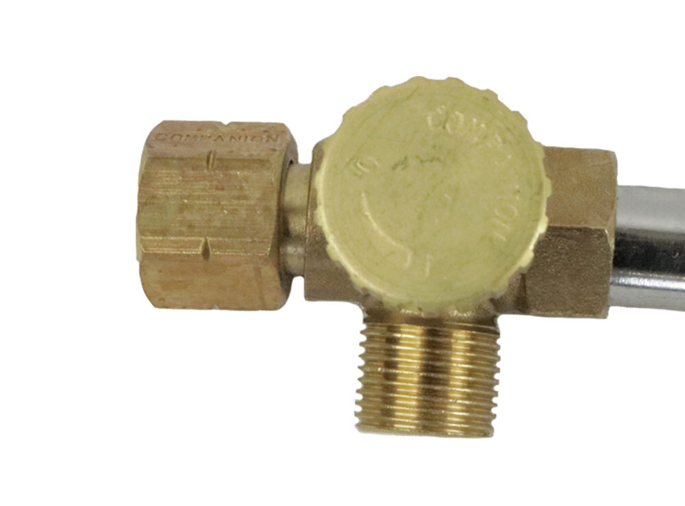 The Companion 1.0 m Lantern Pole - Dual Outlet - 3/8 Fitting is the perfect accessory for all your outdoor adventures. This sturdy gas lantern pole is designed to provide a reliable source of light on your camping trips and outdoor parties. Use this pole to attach your gas lantern and bottle to illuminate your space.