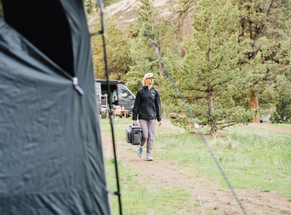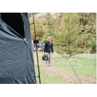 - Oversize zip pocket for shower head, bracket and hose. Recessed pocket for your gas bottle and mesh sleeve for hoses and pump.
