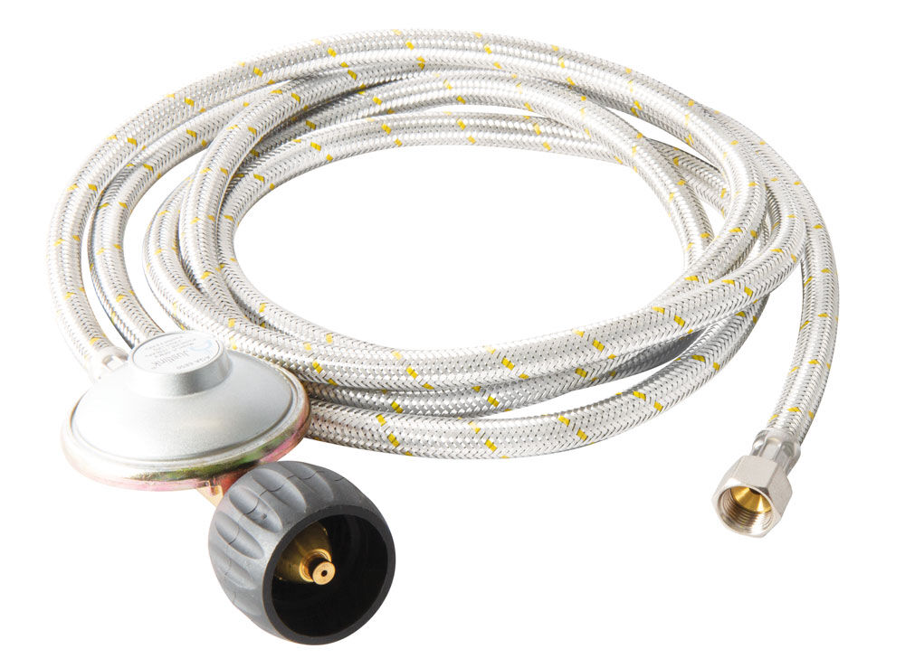The Companion 3000mm braided gas hose with LCC27 regulator is perfect for use with any low pressure gas appliance that needs a 2.75 Kpa gas inlet pressure using a 3/8 SAE inlet connection.