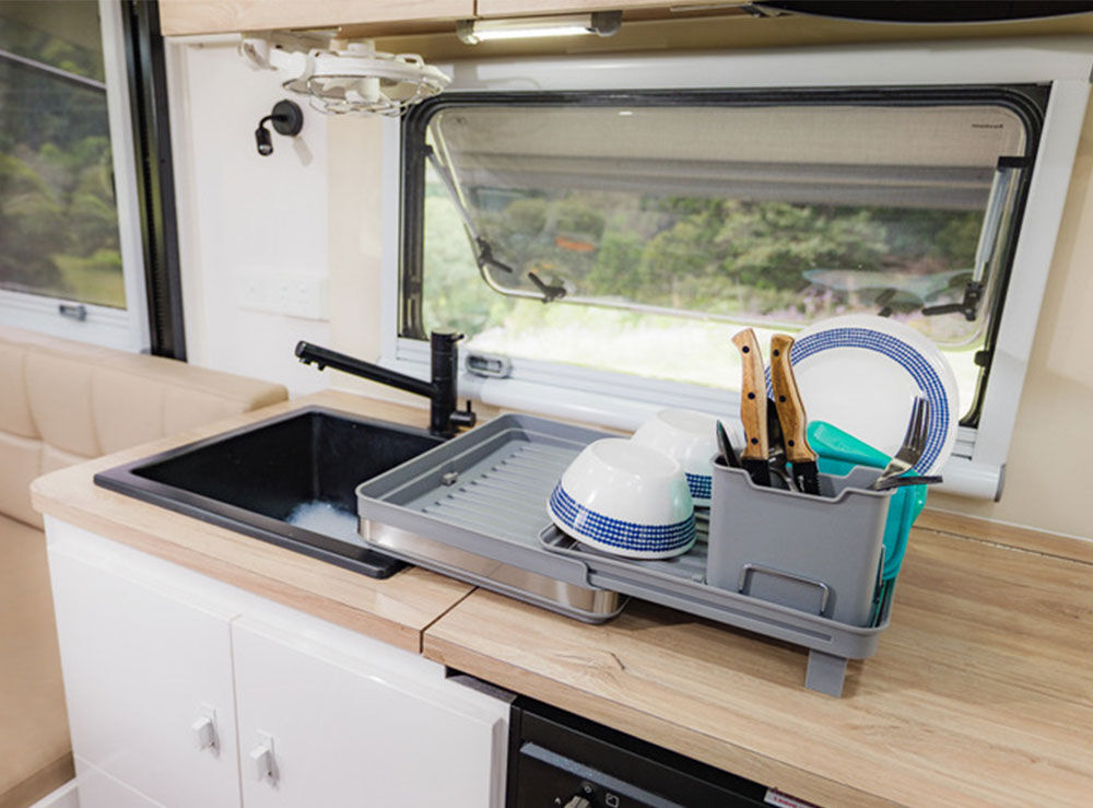 The Companion Deluxe Compact Dish Rack is perfect for motorhomes, RV's or caravans, offering both a compact and expandable design for small or large spaces.