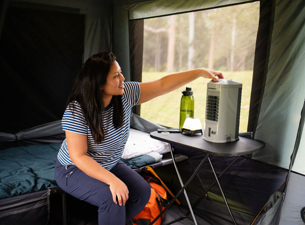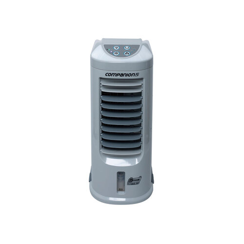 Beat the heat with the Companion Mini Evaporative Cooler during the warmer seasons. This Lithium powered cooler is a compact and lightweight solution for your cooling needs, giving you control with two fan speeds and oscillating functionality.