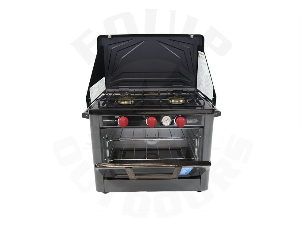 The Companion Portable Gas Oven and Cooktop is a practical and versatile addition to your camp kitchen. The oven features a temperature resistant porcelain interior which can be heated to 250°C while the tempered glass door panel and thermometer display help you keep a close eye on your cooking.