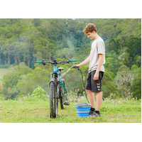 With the pump built into the ergonomic handle and a built-in filter at the hose end, you simply drop the hose into any water source like a bucket or tub - no bulky plumbing or complicated setup required. Perfect for rinsing off sandy feet, muddy boots, surfboards, dishes, pets and more.