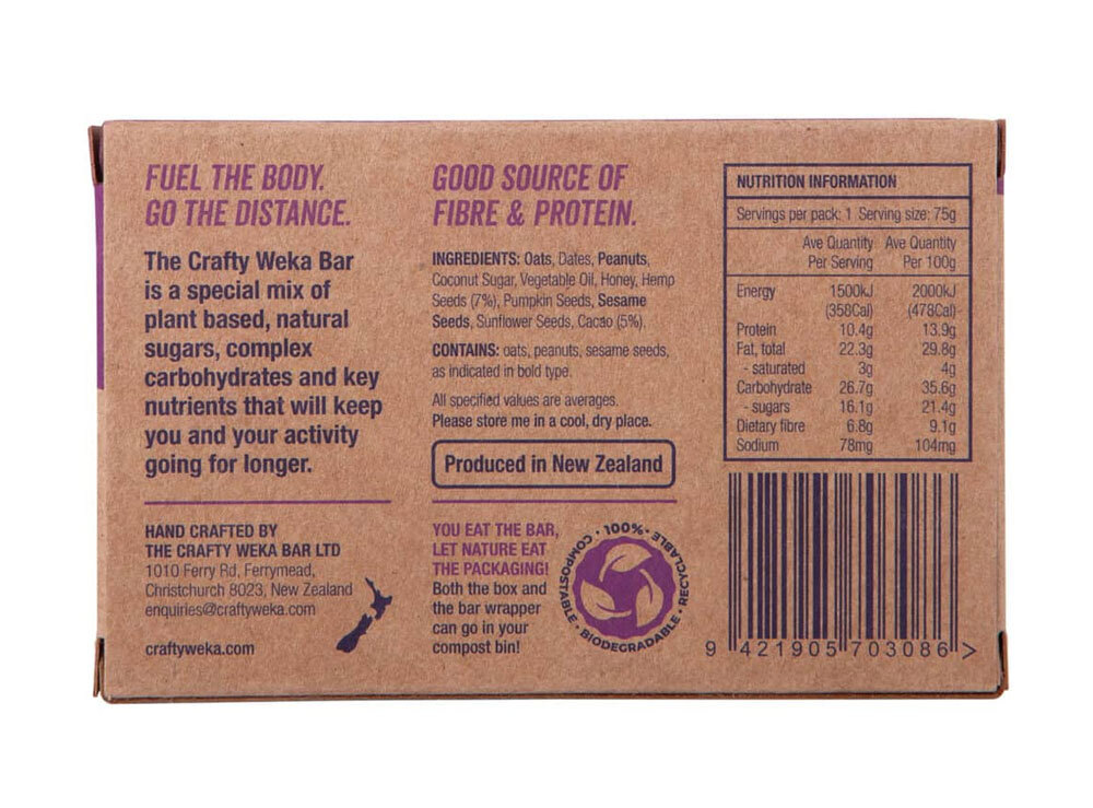 Crafty Weka - Cacao & Hemp Bar - 75g Nutritional Info: