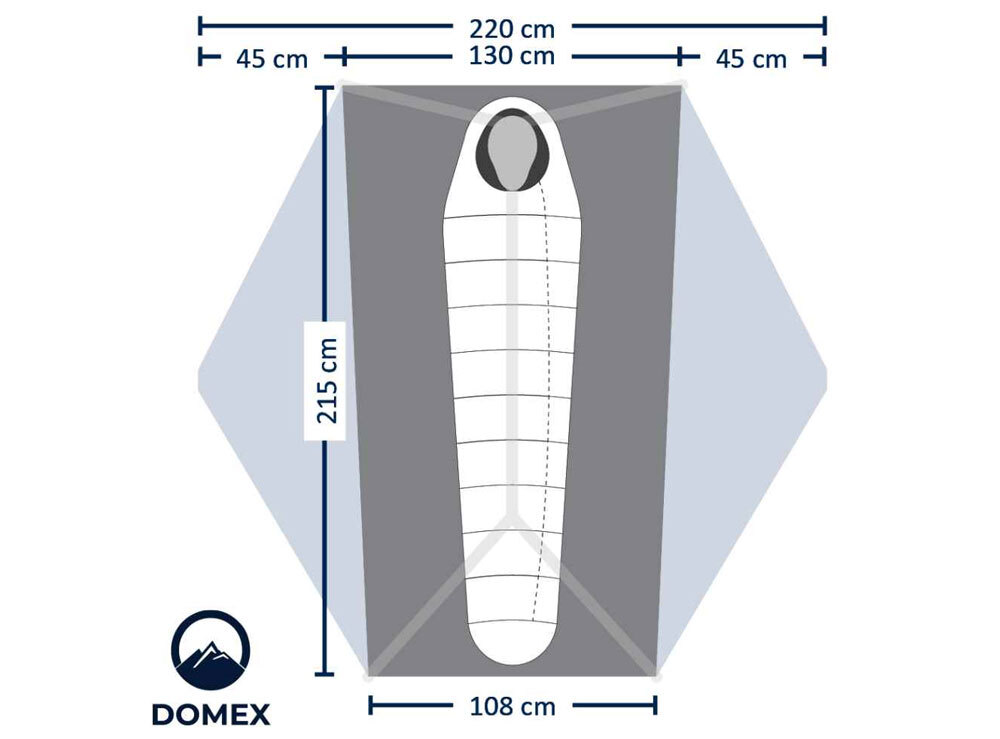 Like all Domex tents, the hub frame design means that the tent is quick and easy for one person to set up and being free-standing gives flexibility to erect the tent in all types of terrain, with the option of moving campsite before pegging the tent down.