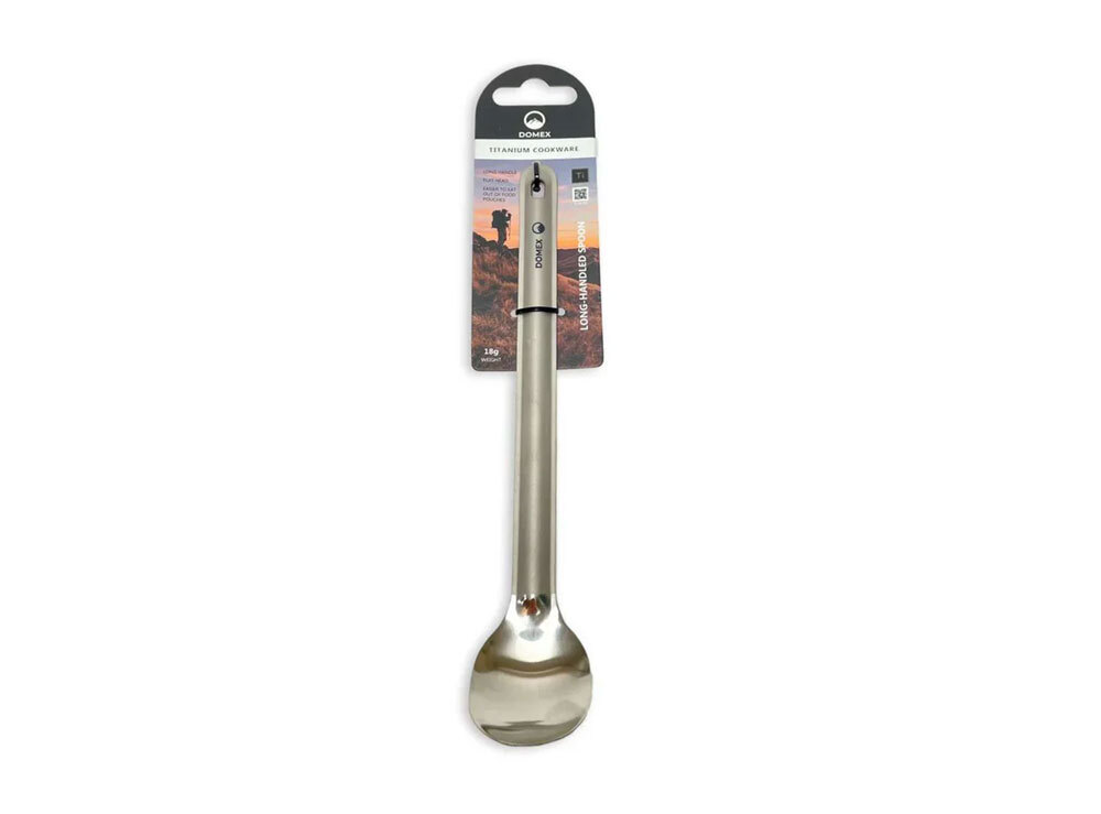The Domex Titanium Long-Handled Spoon is a practical and versatile utensil designed for campers and outdoor enthusiasts who appreciate convenience and minimal cleanup.