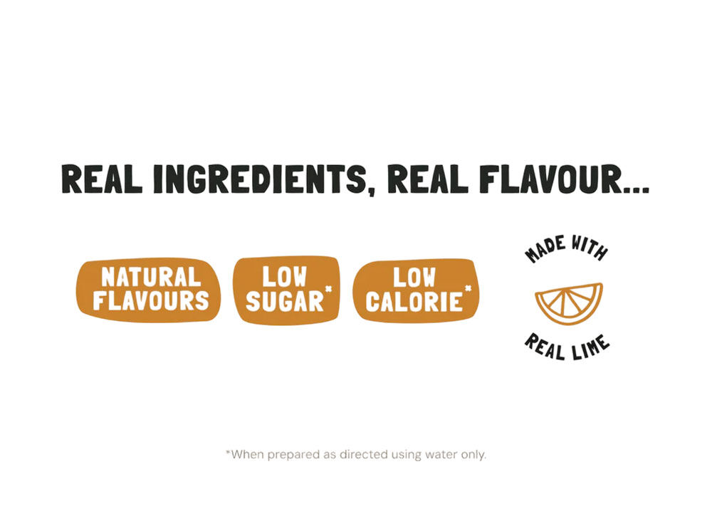 Natural Sweetener [Erythritol, Steviol Glycosides (Stevia)], Natural Flavours, Acid (Citric Acid), Freeze-Dried Lime Powder (6.9%), Salt.