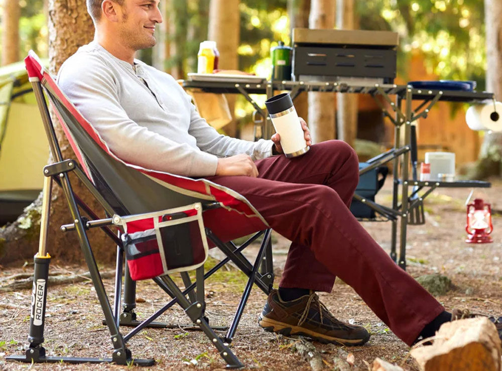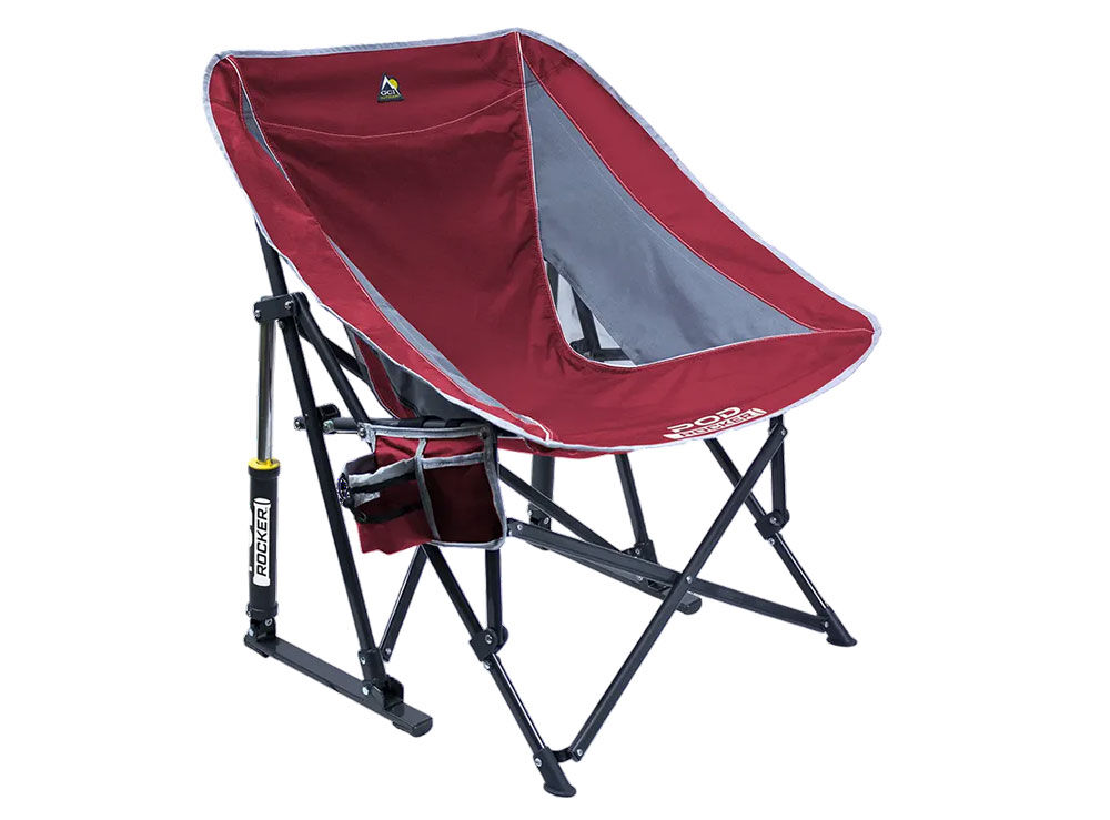 The GCI Outdoor Pod Rocker™ in Red offers the smooth, relaxing motion of a rocking chair in a highly portable and compact folding design.