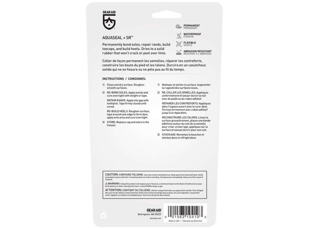 Gear Aid Aquaseal + SR Shoe Repair Adhesive - 28g Tube Features: