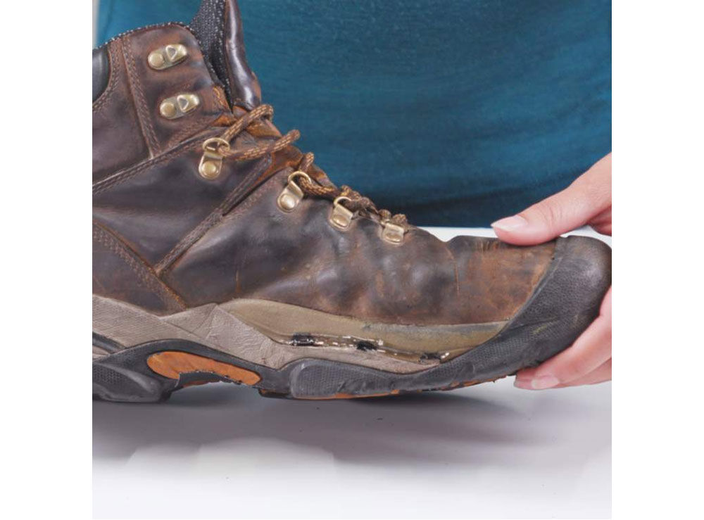 Easily complete a boot repair, create durable toe protectors, and even re-build worn heels at home within a few hours. The tough adhesive formula is unaffected by heat or cold, so your shoe repair will withstand the elements whether at a jobsite or on a mountaintop.