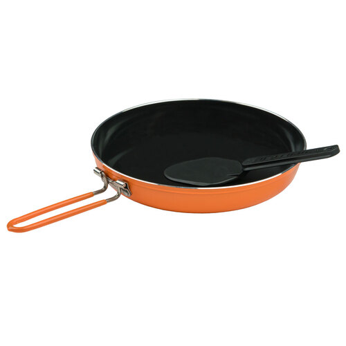 The Jetboil non-stick Summit Skillet packs the performance of your kitchen pans into a trail-ready solution. Not only does it improve your backcountry cooking versatility, the turner / spatula nests into the handle for compact and lightweight travel. After all, your meals on the trail deserve to be just as good as your adventures.