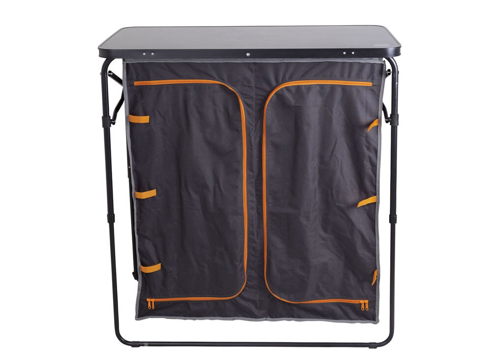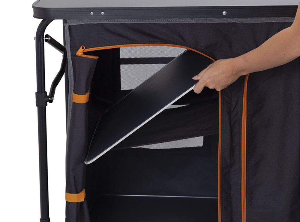 - Two zippable cupboards, each with three removable solid inner shelves and mesh back for ventilation