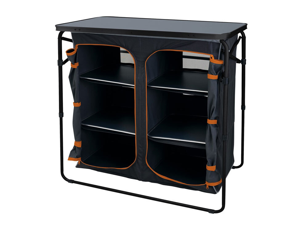 The Kiwi Camping 6 Tier Pantry is a large, easy-to-assemble pantry with six shelves and a hard top. Perfect for keeping your tent and campsite organised.