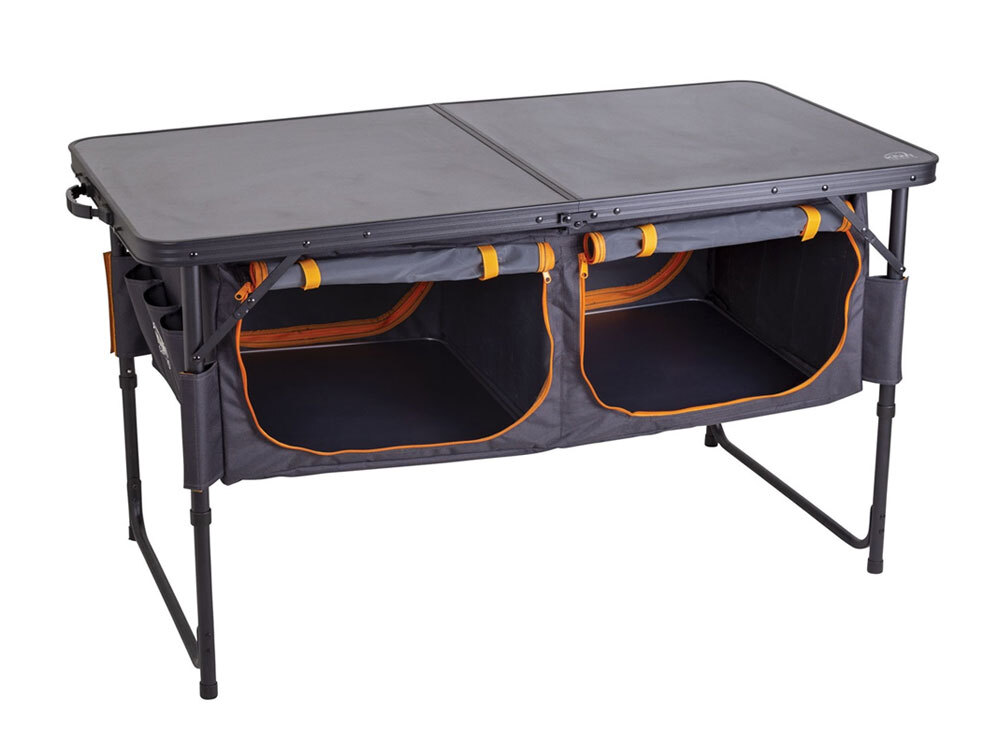 Kiwi Camping Bi-Fold Table with Pantry - Black Features: