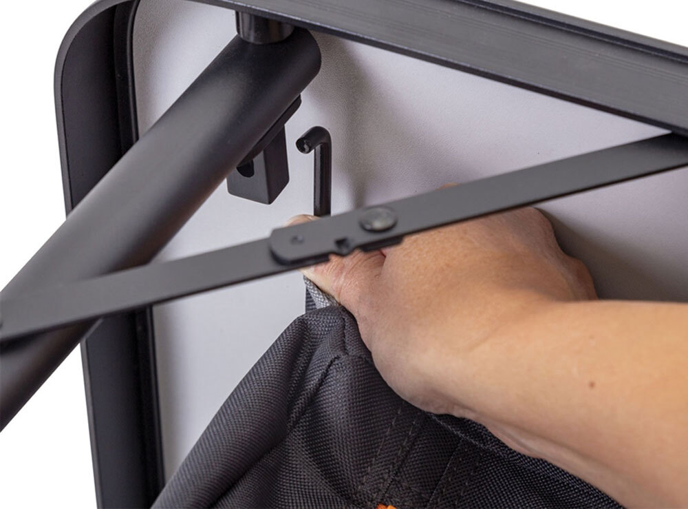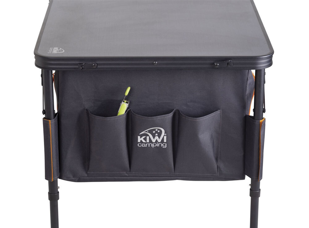 The bi-fold design allows for compact storage with the Kiwi Camping pantry accessory.