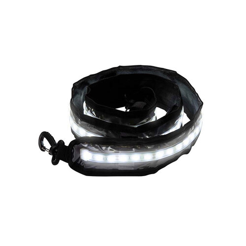 Kiwi Camping's Flexi LED Light Strips - White are perfect for camping outdoors and come with a 5m DC and USB cord. Tap the dimmer switch for up to 1400 lumens of light for your tent, awning, rooftop tent or family camping setup. The 1.3m long LED strip is fitted inside a fabric strap with hook and loop fixings for easy hanging to tent poles or awnings. The supply cords are 5m long and the LED strip is IP65 water-resistant. Includes carry bag.