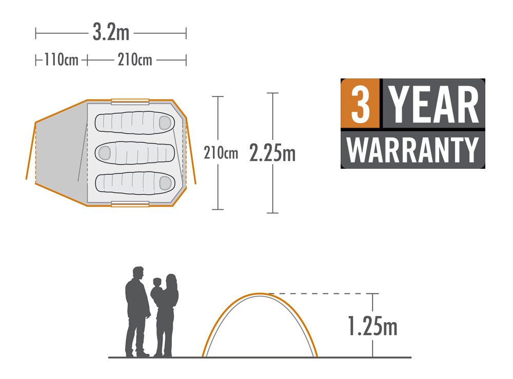 The Kiwi Camping Kea 3 is a great weekend away tent, compact and lightweight, with a storage area and windows for ventilation. Ideal for festivals and weekends away. This innovative tent has a spacious 1 room layout, complemented by a convenient vestibule area for added storage and comfort.