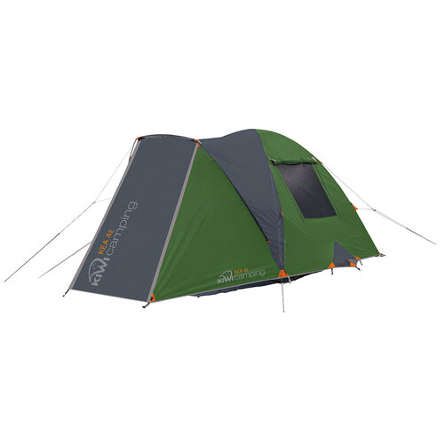The Kiwi Camping Kea 4E Tent is the ultimate recreational tent with 2 entrances and windows with a vestibule for extra storage. Perfect for family getaways and a great first tent for children.