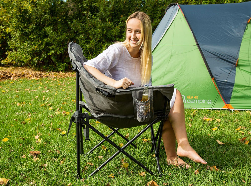 The Kiwi Camping Lush Chair is designed for ultimate relaxation and luxury, the Lush features a steel frame, wide seat base and thick soft padding.