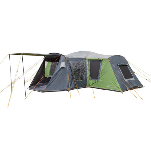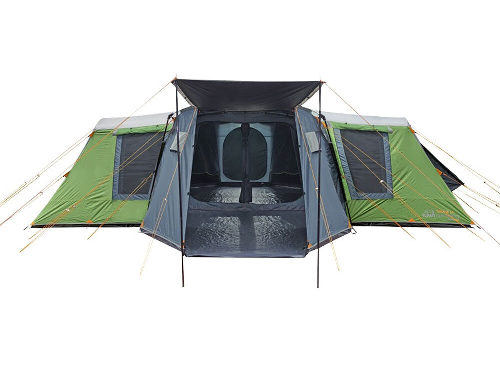 The Kiwi Camping Takahe 10 Blackout tent now has a Blackout fly that is ideal for large families that enjoy a morning lie-in. The Blackout fly blocks the sun for a supremely comfortable camping experience. It has three large rooms, a spacious sunroom and a generous vertical height that is perfect to fit bunks for the kids.
