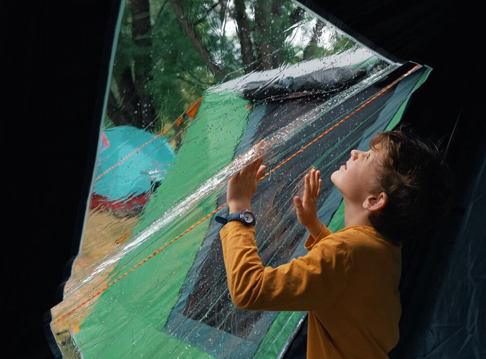 The BlackOut coating is designed to block up to 95% of light and reduce the internal tent temperature by up to 10 degrees. There are four layers of coating applied to the fabric to achieve this feature. The material can sometimes have a ‘speckle’ effect where it looks like there is some light coming through the material, this doesn’t mean there is an issue with the flysheet.