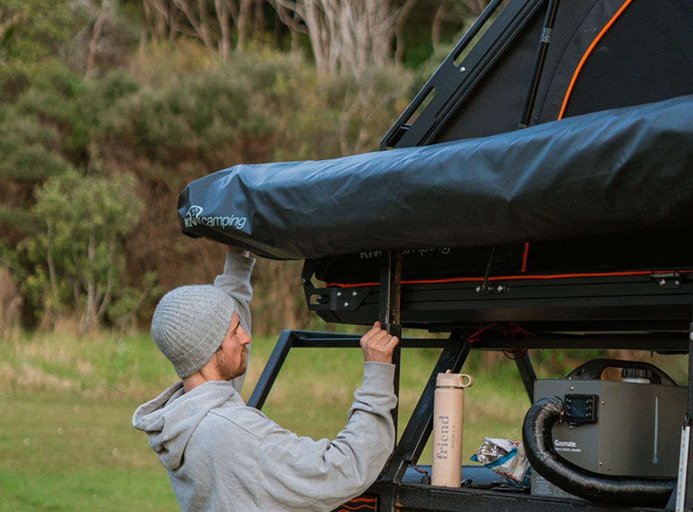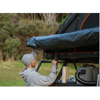 Quick to pitch in under a minute, this awning includes tie-down points, an A-frame design for strength, and a travel cover. It comes with 3 heavy-duty stainless steel mounting brackets and cambuckle compression straps for secure storage while driving. Roof rack requirement; two cross bars or a platform rack.