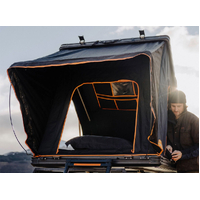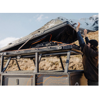 Introducing the Kiwi Camping Tuatara Peak Rooftop Tent with aluminium hardshell. Thanks to the swift pop-up gas struts, you'll be fully set up in under a minute. The innovative 'T' channel system lets you attach accessories directly to the hard shell.
