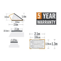 The airflow hatch design allows ventilation even in inclement weather. A trailblazer in New Zealand, it is designed to integrate perfectly with the Peak Annex Room attachment (available separately). The Tuatara Peak is the ultimate choice for avid adventurers.