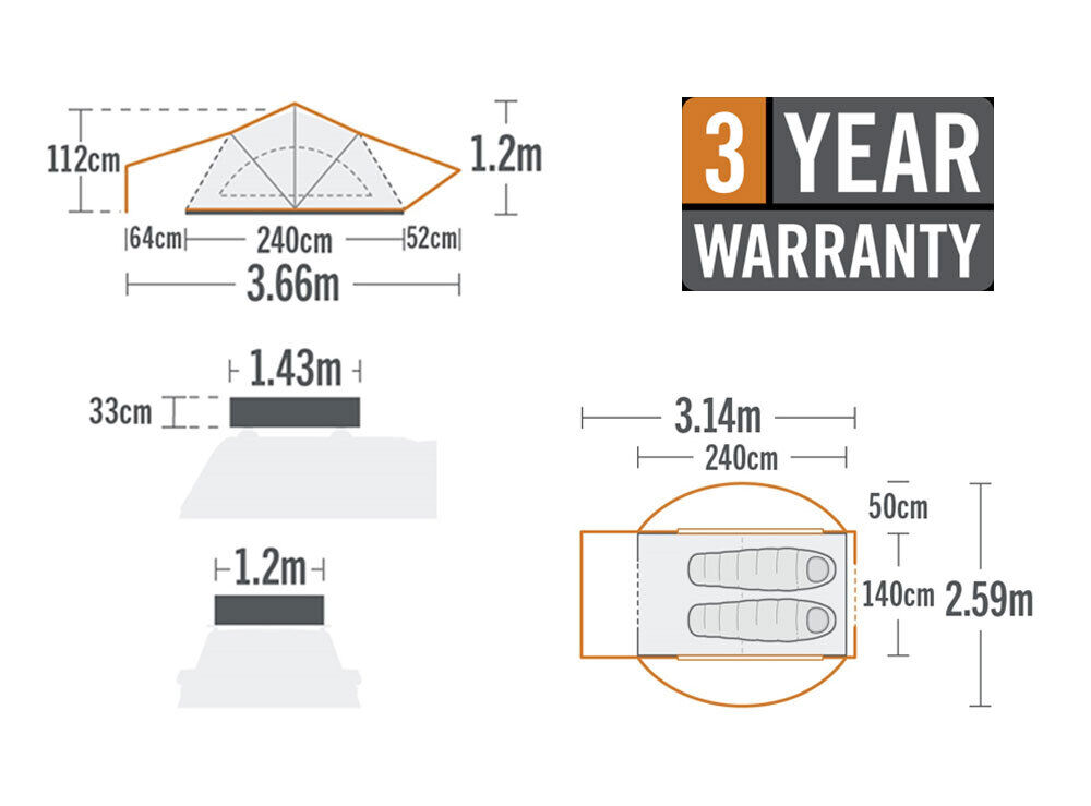 Kiwi Camping Tuatara Summit Extended Rooftop Tent Specifications: